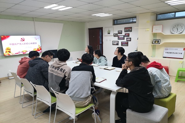 10月23日下午,党校第62期材料亚洲色吧(屯溪路校区)党员班2016级学员于材料楼辅导员工作室开展了第一次集中学习讨论活动,顾茜同志带领全体学员对共产党人的初心和使命进行了学习,并观看了视频《共产党人的初心和使命》。