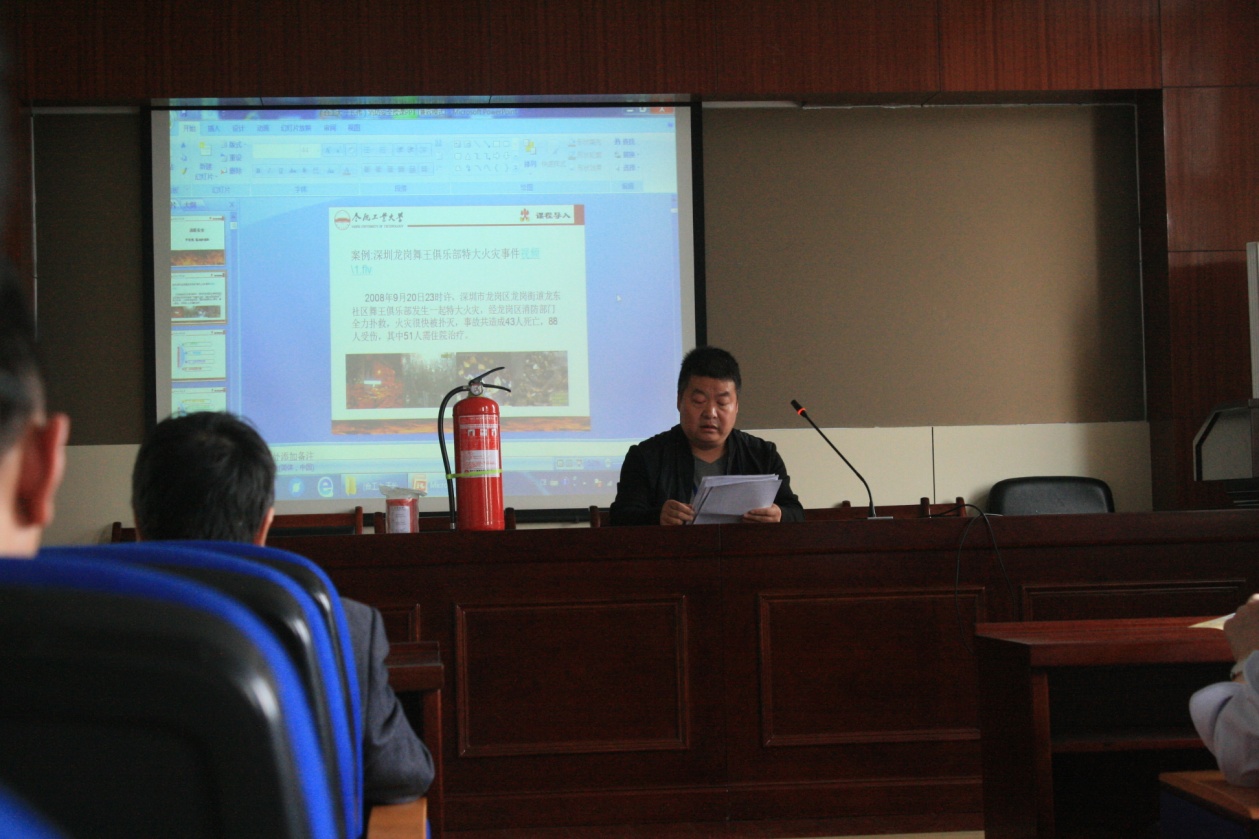 主持人首先介绍了举办这次讲座的主要目的和内容,在热烈的掌声中,校保卫办的焦峰老师上台为参加学习的研究生作了有关消防的知识普及。焦峰老师为大家讲解了基本消防安全制度,并简要介绍了相关法律法规,旨在使大家形成基本消防观念。焦峰老师结合实际案例,并配合一幅幅触目惊心的图片,一段段发人深省的视频,生动地讲解了消防安全知识,使在场同学都颇受震动;此外,焦峰老师还介绍了火灾应对措施,介绍了常规消防设施的使用方法。根据校保卫办的工作安排,材料亚洲色吧后续还将举行模拟火灾现场应对方法真人演习,进一步增强同学们在遭遇到火灾时的自救能力。
